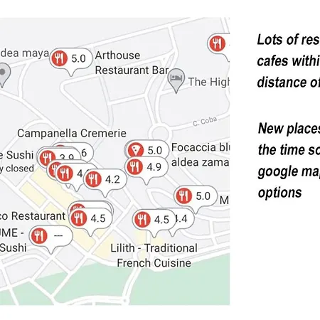 Mezi nejlepší restaurace poblíž Suites At Treetops Tulum patří Curry by Po Thai Restaurant a The Pitted Date Vegan Restaurant, a nacházejí se v okruhu 400 metrů. - ❓